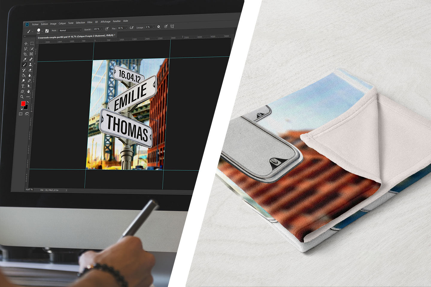 Nous imprimerons ensuite votre design sur un plaid vierge. Un contrôle qualité sera effectué.