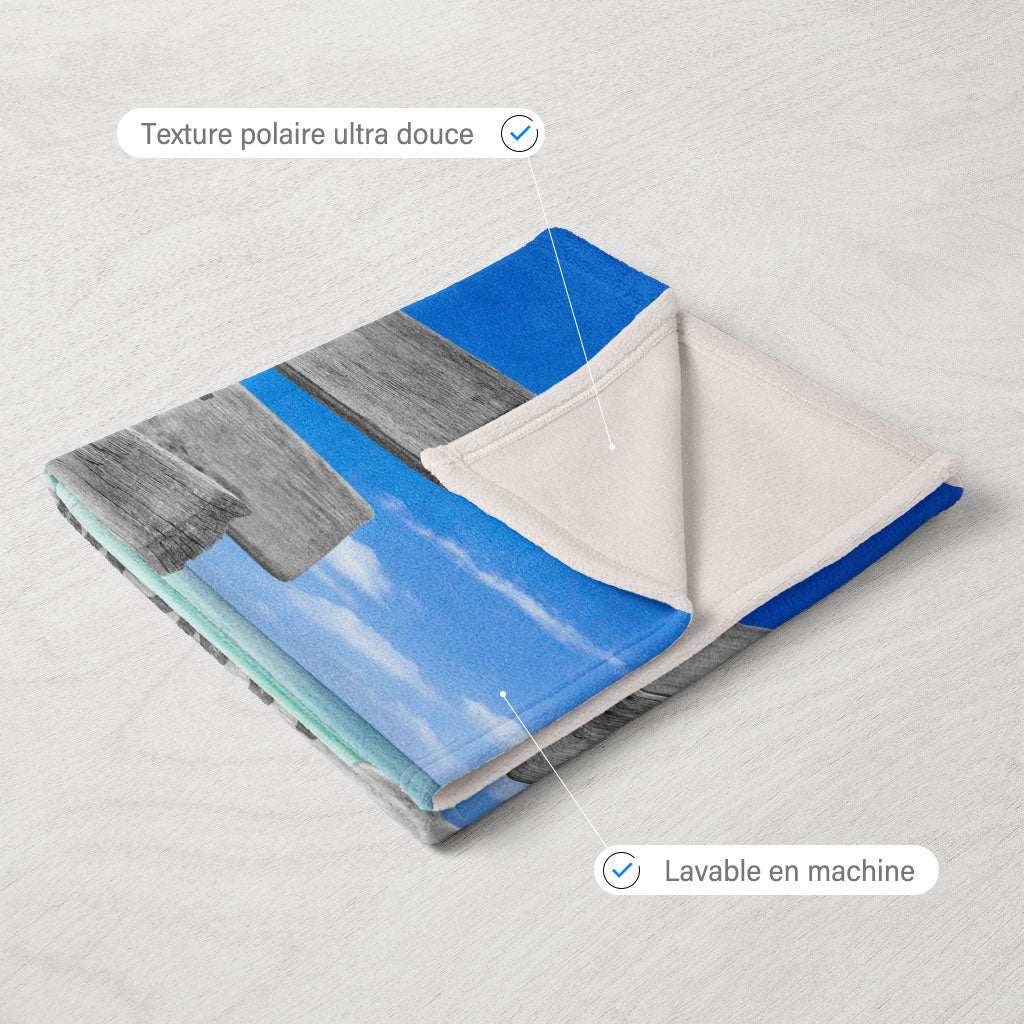 Tel un symbole, personnalisez les prénoms de votre Plaid personnalisé avec un décor de plage tropical, une eau turquoise et l'ombre d'un cocotier.