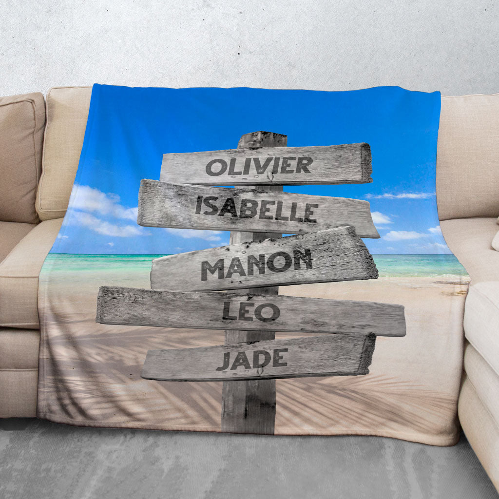 Plaid personnalisé, Prénom, Famille, Plage Sable Cocotier