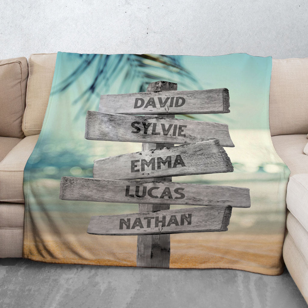 Plaid personnalisé, Prénom, Famille, Plage sable fin Cocotier