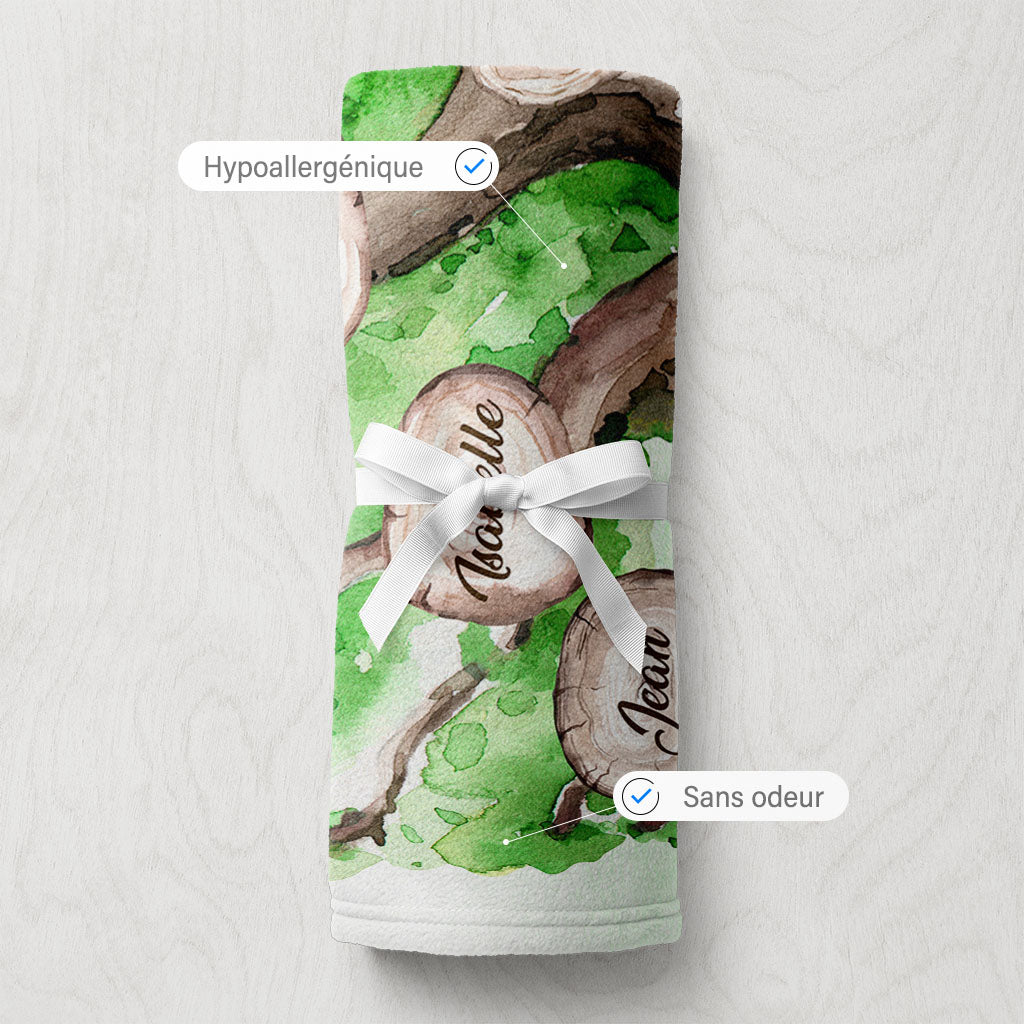Plaid personnalisé, Prénom, Polaire, famille, Arbre de vie, Chêne Aquarelle Vert