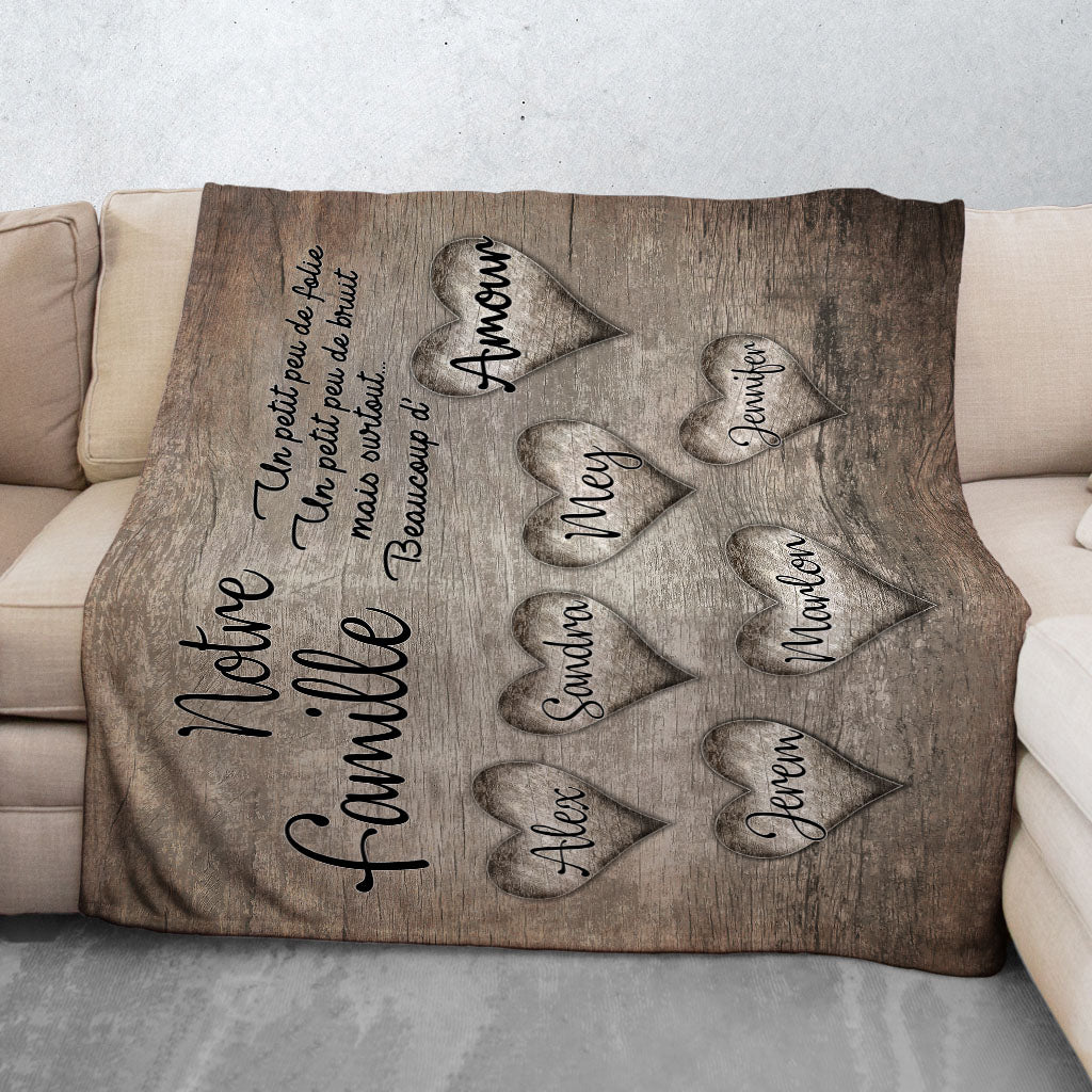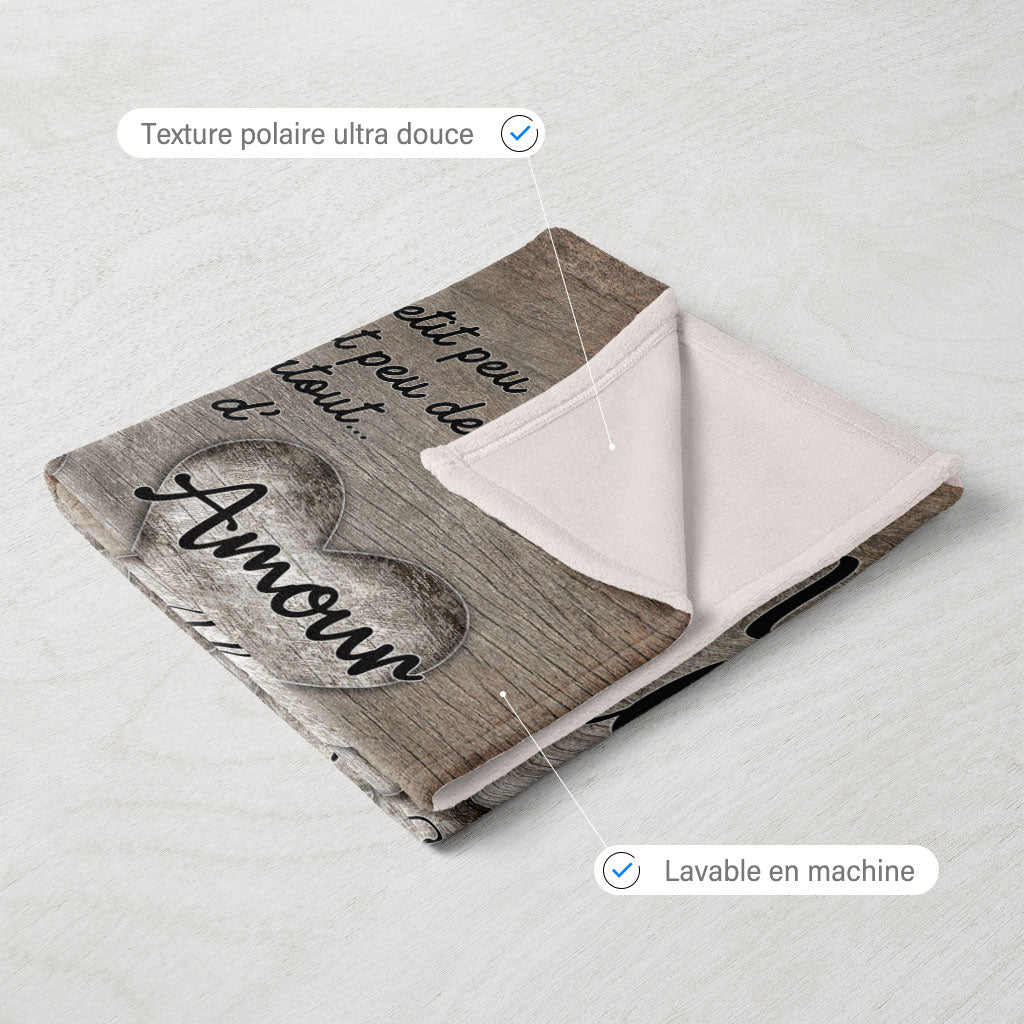 Plaid personnalisé, Prénom, Polaire, famille, coeurs gravés bois